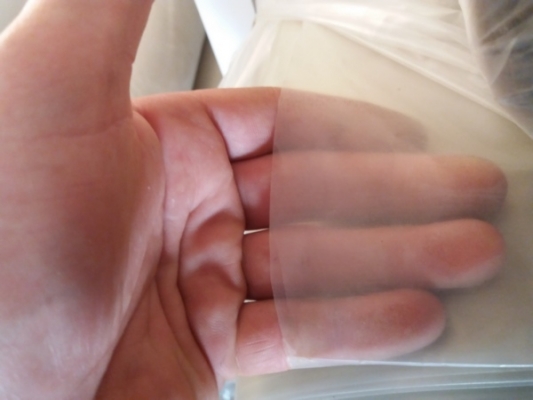 + вид полотна полупрозрачный, с оттенками серого, зеленоватого либо бежевого тона
