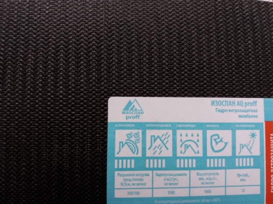 Изоспан AQ proff гидро-влаго-ветроизоляционная трехслойная супердифузионная высокотехнологичная мембрана, изготовлена из полипропилена.